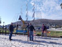 Τελευταίες λεπτομέρειες για το Χριστουγεννιάτικο Καράβι του Γαυρίου, το οποίο θα φωταγωγηθεί απόψε κηρύσσοντας την έναρξη της εορταστικής περιόδου στο Λιμάνι του νησιού.