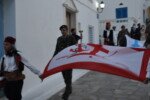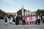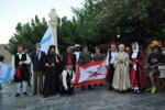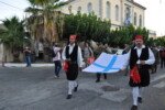 Η πομπή με παραδοσιακές φορεσιές ξεκίνησε από το Ανοικτό Θέατρο, ο μοναχός Αέτιος κρατώντας το λάβαρο της Επανάστασης, συνοδεία μουσικής και παραδοσιακών οργάνων τους Αμορόζα / Amoroza Ensemble διέσχισε την αγορά με τελικό προορισμό την πλατεία Αφανούς Ναύτου.
