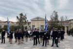 Μετά την συγκέντρωση των επισήμων αρχών στο Δημαρχείο, ακολούθησε η δοξολογία στον Ιερό Μητροπολιτικό Ναό Αγίου Γεωργίου, η κατάθεση στεφάνων και η παρέλαση.