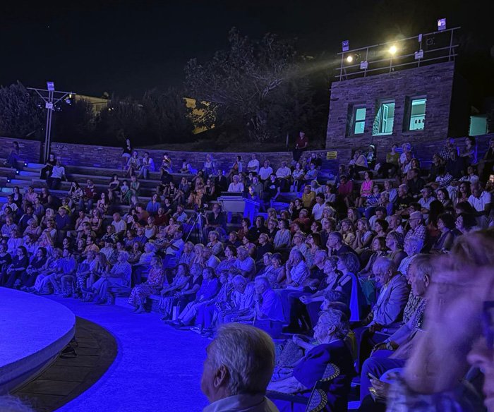 Ο Δημήτρης Πολέμης με την χαρακτηριστική νευρώδη φωνή μας ταξίδεψε χθες 5 Αυγούστου 2025, στο Ανοιχτό Θέατρο, από την αστική Άνδρο των νεανικών του χρόνων μέχρι την ίδρυση της Καϊρείου Βιβλιοθήκης το 1987, μέσα από την ταινία του σκηνοθέτη Γιώργου Δάμπαση. Μια ταινία καλογυρισμένη, με κεντρικούς ομιλητές τον Αυγουστή Ι. Πολέμη, τον Μιχάλη Τιβέριο και τον Δημήτρη Κυρτάτα, που κράτησαν το κοινό ενθουσιώδη μέχρι τέλους.