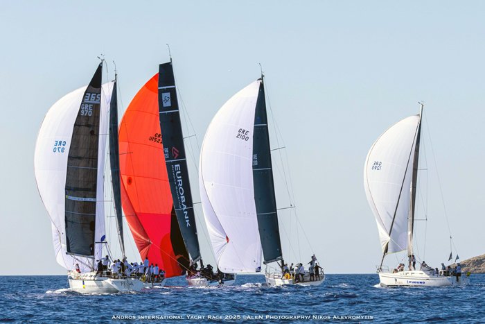 Με βόρειους ανέμους, μέτριας έντασης και ιδανικές συνθήκες για ιστιοπλοΐας «άνοιξε» πανιά το κύριο μέρος του στόλου του «58ου Eurobank Διεθνούς Ιστιοπλοϊκού Αγώνα Άνδρου “Ι. Β. Γουλανδρής”» την Παρασκευή 29.8.2025.