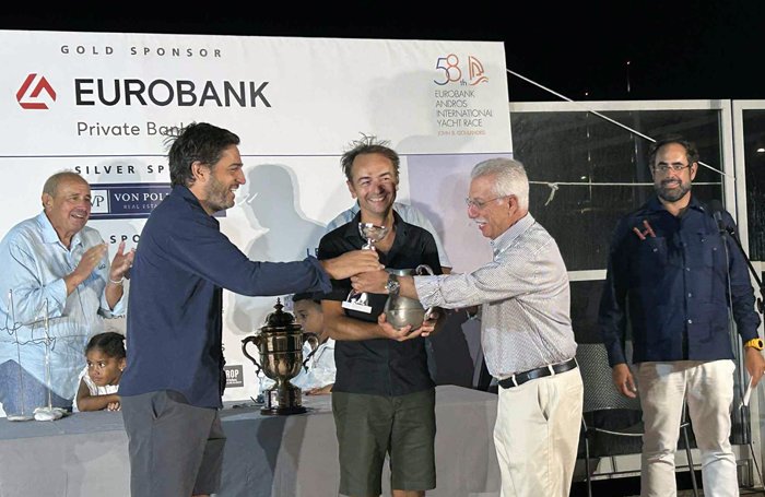 Το ιστιοφόρο από τη Θεσσαλονίκη ήταν ο νικητής στην κούρσα από τη Βουλιαγμένη μέχρι την Άνδρο ενώ το Line Ηonnors κατέκτησε το «Velos Eurobank Private Banking», των Ολυμπιονικών Τάκη Μάντη – Παύλου Καγιαλή που πέρασε πρώτο τη γραμμή τερματισμού. Στη διαδρομή «Οίνοψ», η οποία πήρε εκκίνηση απέξω από τον ιστό ιστιοπλοΐας του Ναυτικού Ομίλου Χίου, πρώτευσε το «Frankly MyDear» με κυβερνήτη τον πρόεδρο του Ναυτικού Ομίλου Άνδρου Φαίδωνα Ταμβακάκη. Ο «58ος Eurobank Διεθνής Ιστιοπλοϊκός Αγώνας Άνδρου “Ι. Β. Γουλανδρής”» αποτελεί συνδιοργάνωση του Ναυτικού Ομίλου Ελλάδος και του Ναυτικού Ομίλου Άνδρου.