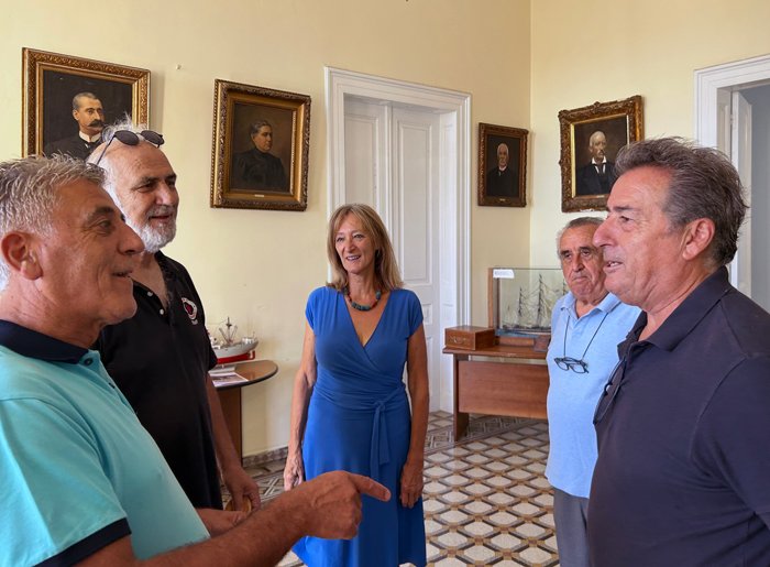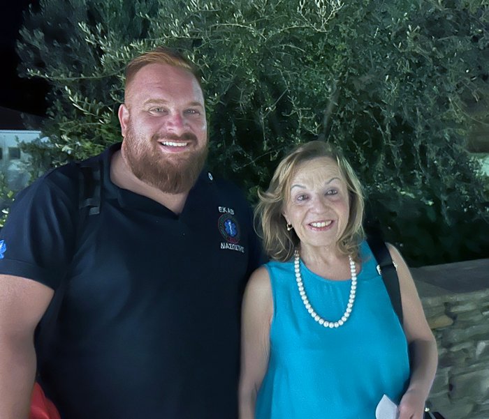 Οι ηθοποιοί θέλοντας να πουν ένα ευχαριστώ, λίγο πριν την αναχώρησή τους από το νησί, έκαναν μια βόλτα στον πεζόδρομο της Χώρας και επισκέφθηκαν το Δημαρχείο, του οποίου την αρχιτεκτονική θαύμασαν.