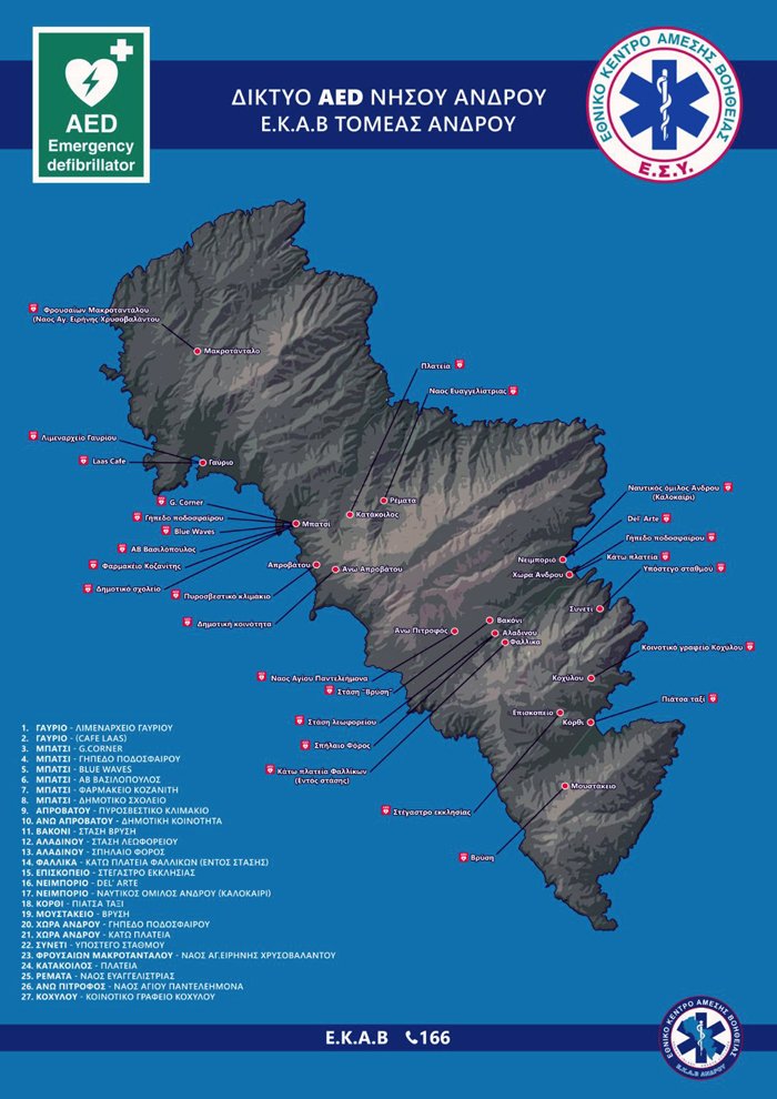 Είναι χρήσιμο να το γνωρίζουμε. Πού βρίσκονται οι εξωτερικοί απινιδωτές στην Άνδρο;