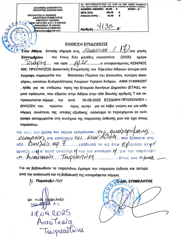 Εξώδικο στην ΕΤΑΔ για το Xenia από τον Β. Πομόνη Εξώδικο στην ΕΤΑΔ για το Xenia από τον Β. Πομόνη
