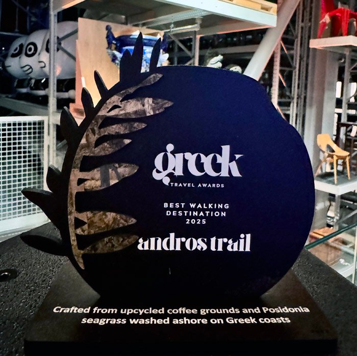 Το βραβείο αυτό δικαιώνει και αναδεικνύει τις προσπάθειες του Andros Routes, των Ανδριωτών εθελοντών που συμβάλλουν τα μέγιστα για τη συντήρηση και καθαριότητα των μονοπατιών, των τοπικών φορέων και του Δήμου.”