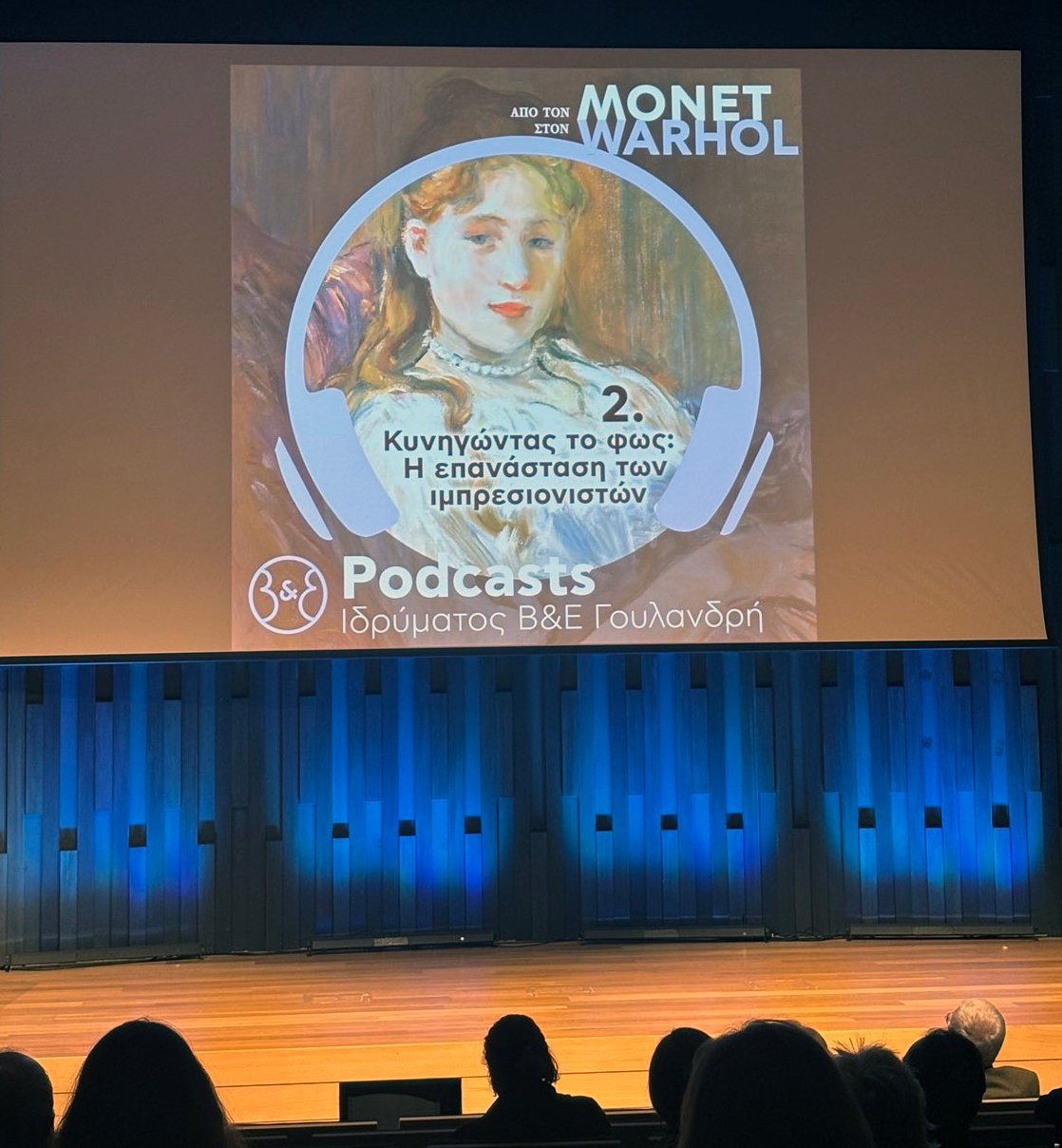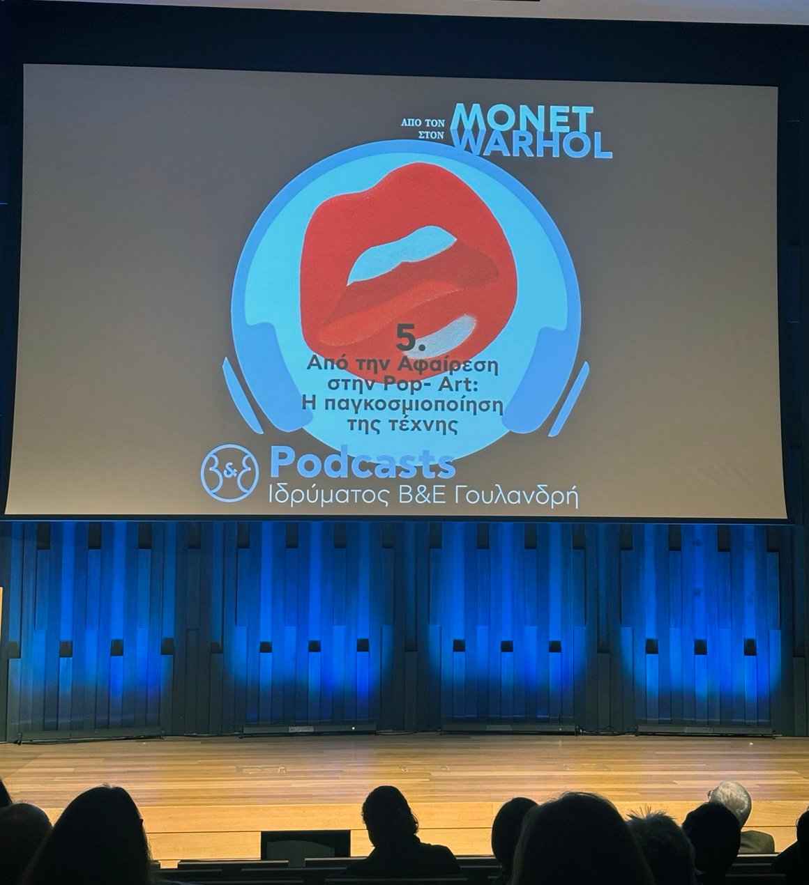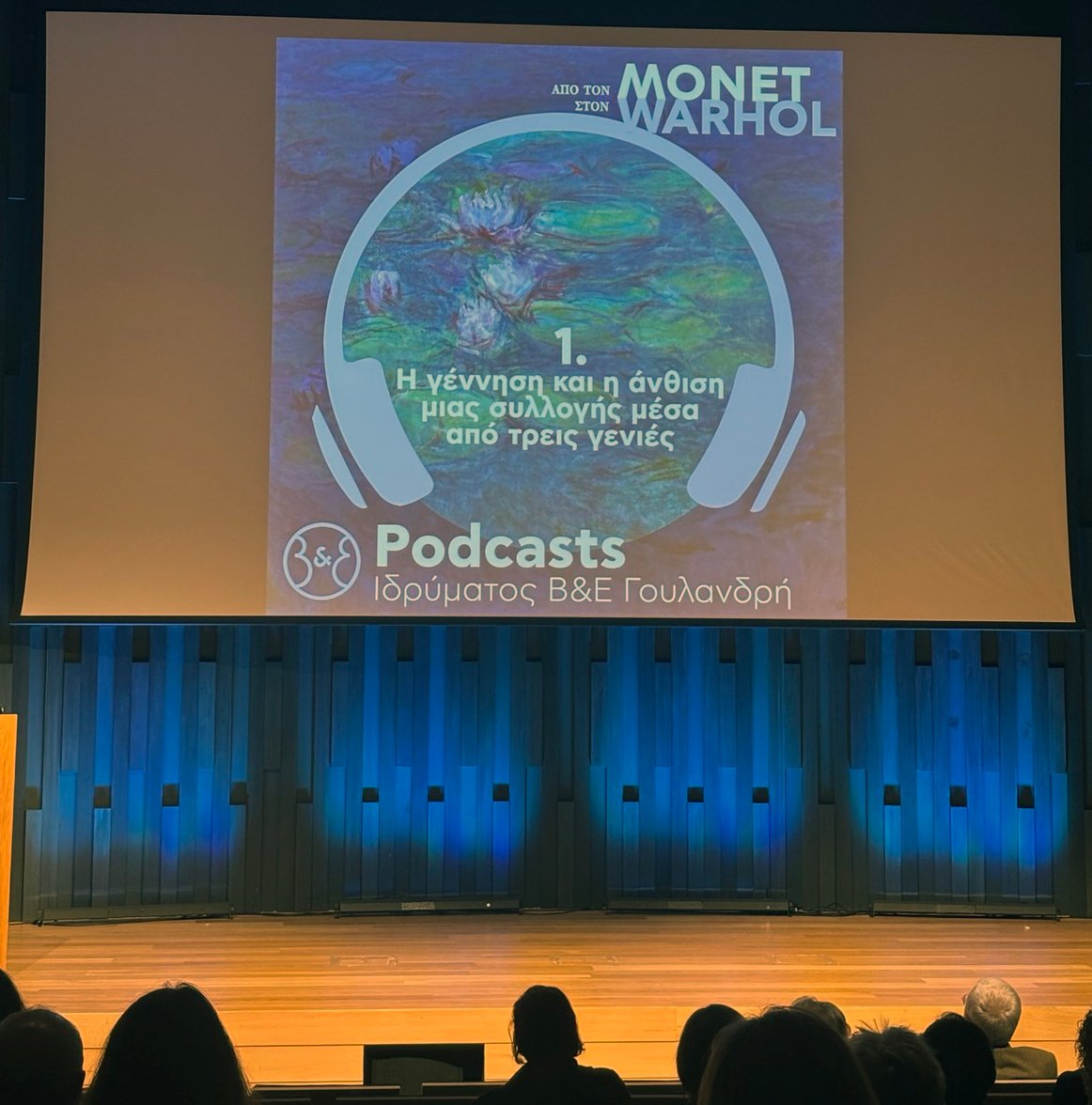 Η νέα σειρά podcasts του Ιδρύματος Β&Ε Γουλανδρή «B&E Goulandris Podcasts: μια ηχητική κατάδυση στον μαγευτικό κόσμο της Τέχνης», που εγκαινιάστηκε με μια ενότητα πέντε επεισοδίων αφιερωμένη στην επετειακή έκθεση Takis 1∞, συνεχίζεται με ένα ειδικό αφιέρωμα στην έκθεση Από τον Monet στον Warhol: Τρεις γενιές, μια συλλογή, ένα ταξίδι στην εξέλιξη της Μοντέρνας Τέχνης.