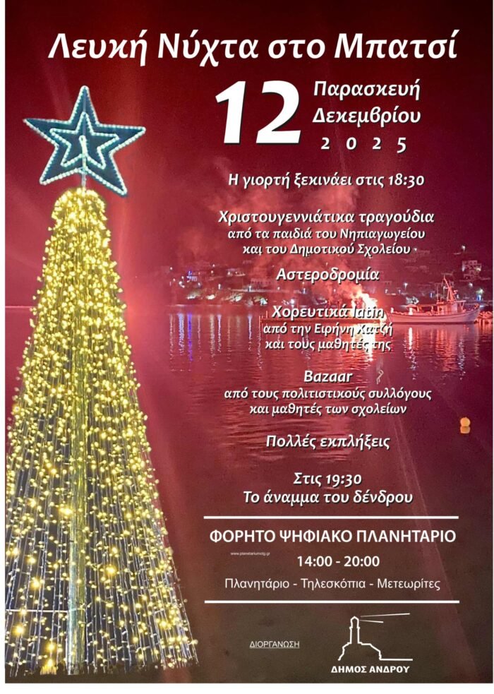 Η Λευκή Νύχτα στο Μπατσί δεν είναι μόνο μια εκδήλωση. Είναι μια πρόσκληση για να συναντηθούμε, να χαρούμε, να μοιραστούμε, να ανάψουμε όλοι μαζί το φως της γιορτής. Σας περιμένουμε να τη ζήσουμε παρέα.