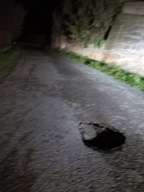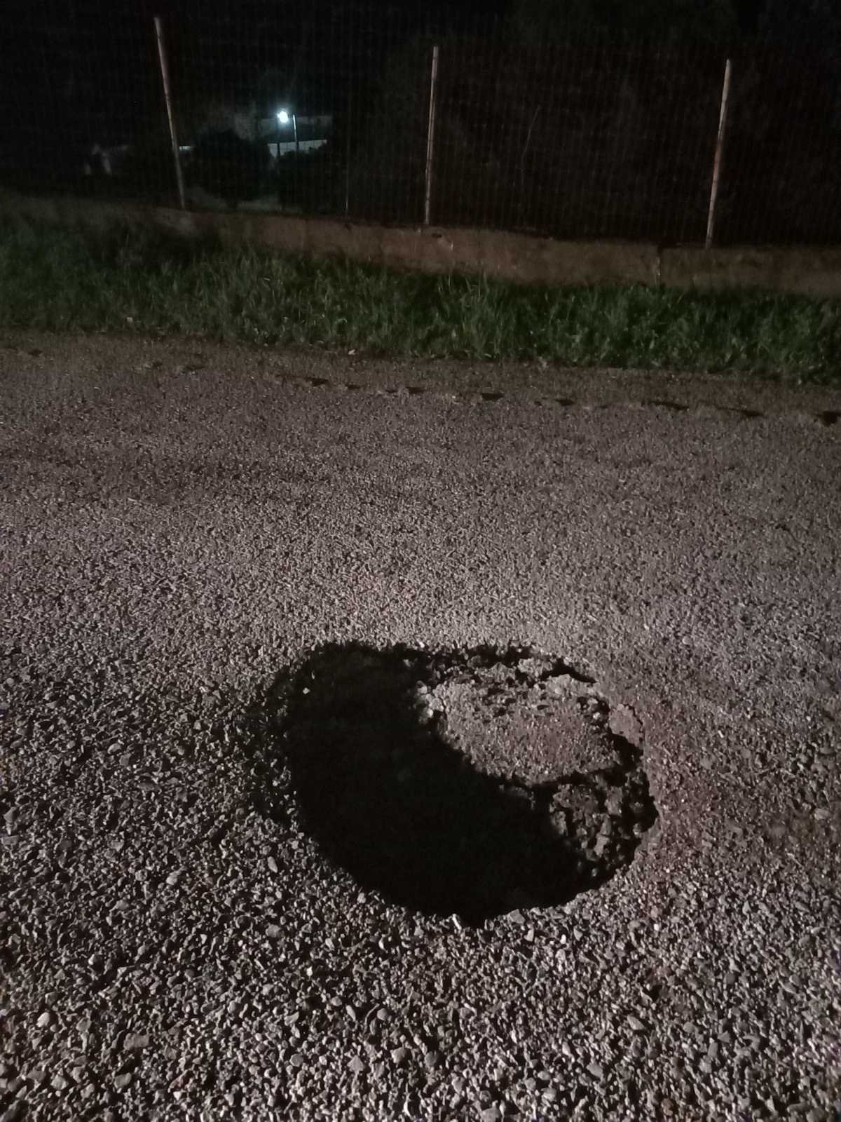 Συγκεκριμένα από άγνωστο προς το παρόν αίτιο το οδόστρωμα στο μέσο περίπου της ανωτέρω οδού έχει υποστεί καθίζηση και έχει προκληθεί επικίνδυνη τρύπα για τα διερχόμενα οχήματα.