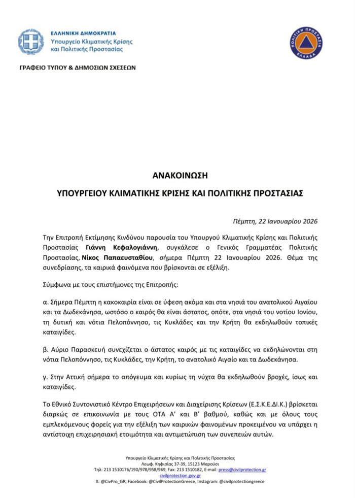 Για τυχόν αντιμετώπιση κινδύνου ενημερώνουμε στα τηλέφωνα Υπηρεσιών ΑΝΔΡΟΥ