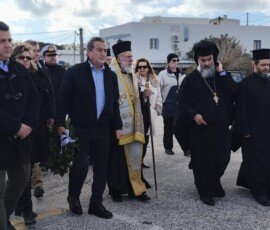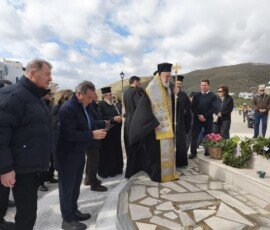 Η σημερινή επιμνημόσυνη δέηση στο Γαύριο τελέστηκε από ιερείς του νησιού και τον Μητροπολίτη Δωρόθεο Β΄, ο οποίος κατέφθασε και αμέσως μετά αναχώρησε με το πλοίο της γραμμής, παρουσία του Δημάρχου, του Λιμενάρχη, αντιδημάρχων, δημοτικών συμβούλων και της προέδρου του τοπικού συμβουλίου, αποδίδοντας τον ελάχιστο φόρο τιμής σε εκείνους που χάθηκαν στη μάχη με τα στοιχεία της φύσης. Η δέηση τελέστηκε στο μνημείο που έχει ανεγερθεί με πρωτοβουλία και προσωπική φροντίδα του Στέφανου Μπουρατζή, ένα μνημείο που δεν αποτελεί απλώς μια κατασκευή, αλλά έναν τόπο συνάντησης μνήμης, πένθους και ιστορικής συνείδησης.