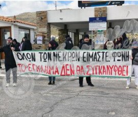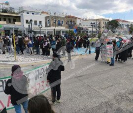Στην Άνδρο η συγκέντρωση έγινε στο Γαύριο και παρά το τσουχτερό κρύο είχε σημαντική συμμετοχή.