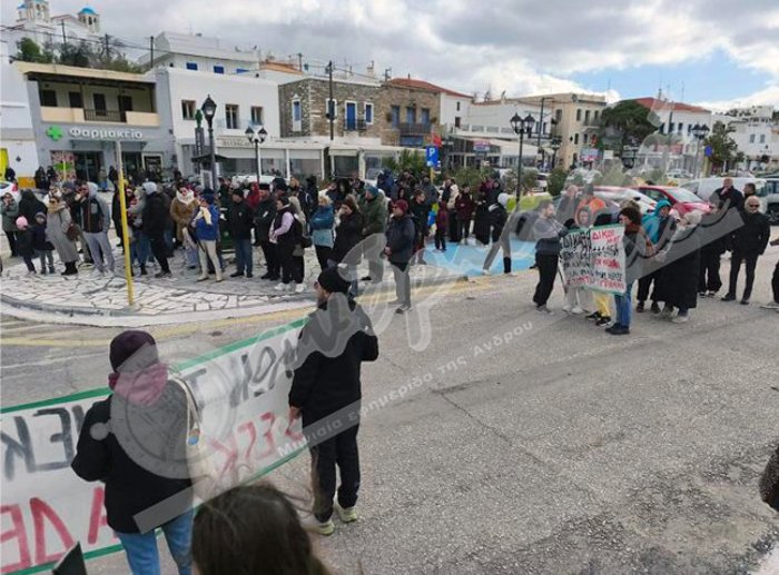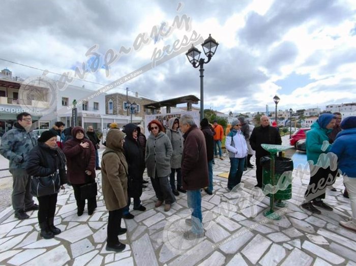 Στην Άνδρο η συγκέντρωση έγινε στο Γαύριο και παρά το τσουχτερό κρύο είχε σημαντική συμμετοχή.