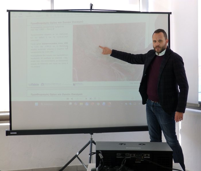 Κεντρικός ομιλητής ήταν ο χωροτάκτης κ. Μ. Λάζογλου, ο οποίος παρουσίασε αναλυτικά τα δεδομένα και απάντησε εμπεριστατωμένα στις προτάσεις.
