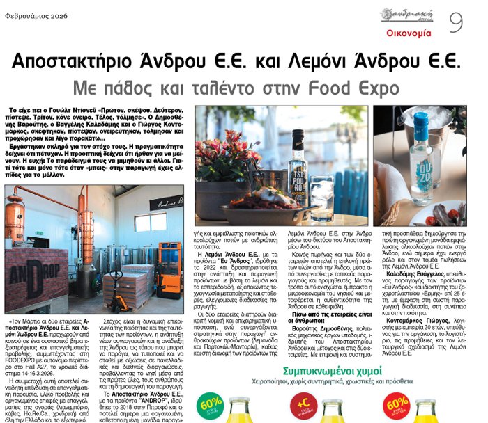 *Το Αποστακτήριο Άνδρου και το Λεμόνι Άνδρου στην food expo