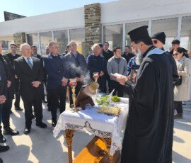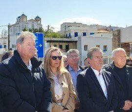 Με την ευκαιρία του εορτασμού της Παναγίας Θεοσκεπάστου και την παρουσία στο νησί των υφυπουργού Ναυτιλίας Στ. Γκίκα και αν. υπουργού Αθλητισμού Γ. Βρούτση, καθώς και βουλευτών και πολιτευτών του νομού τελέστηκε Αγιασμός της ανακατασκευής του βορείου προβλήτα του Γαυρίου, σήμερα Παρασκευή 27 Μαρτίου 2026.