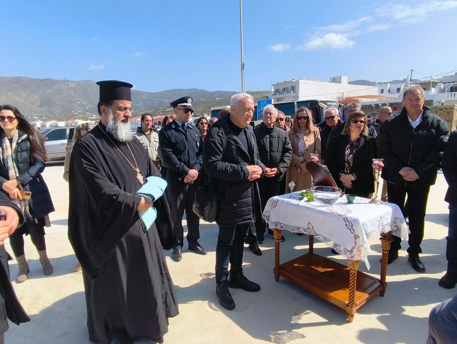 Με την ευκαιρία του εορτασμού της Παναγίας Θεοσκεπάστου και την παρουσία στο νησί των υφυπουργού Ναυτιλίας Στ. Γκίκα και αν. υπουργού Αθλητισμού Γ. Βρούτση, καθώς και βουλευτών και πολιτευτών του νομού τελέστηκε Αγιασμός της ανακατασκευής του βορείου προβλήτα του Γαυρίου, σήμερα Παρασκευή 27 Μαρτίου 2026.