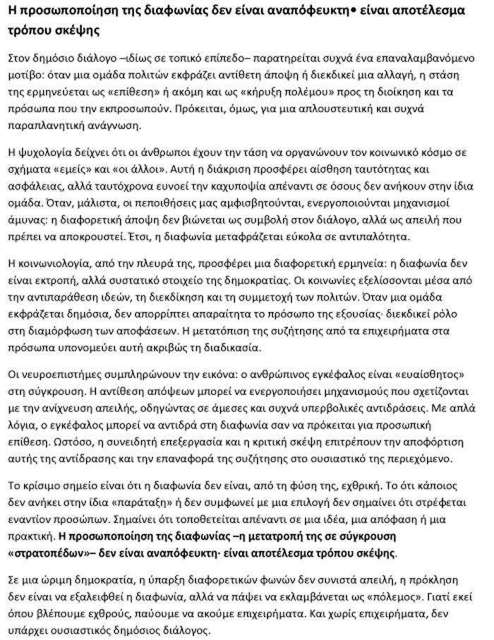 ΑποψηΜεταξυ μας “Όποιος δεν είναι μαζί μας, είναι εναντίον μας”; Από Ανδριακή Press - 14/04/2026 FacebookXWhatsAppLinkedinEmailPrintTelegramViberCopy URL Της ΞΕΝΙΑΣ ΑΘΑΝΑΣΟΥΛΗ ΠΑΡΟΜΟΙΑ ΑΡΘΡΑΠΕΡΙΣΣΟΤΕΡΑ.... Τεχνες-Γραμματα «CHECK IN για 2» Έρχεται στην Άνδρο Επιστολες Η Υγεία δεν είναι Πεδίο Διχασμού και Μικροπολιτικής Επιστολες Επώνυμη απάντηση από την «έμμισθη Σύμβουλο» του Δημάρχου. ΑΦΗΣΤΕ ΕΝΑ ΣΧΟΛΙΟ Ακύρωση απάντησηςΗ andriakipress.gr δημοσιεύει κάθε σχόλιο το οποίο είναι σχετικό με το θέμα. Ωστόσο, αυτό δεν σημαίνει ότι υιοθετεί τις απόψεις αυτές. Διατηρεί το δικαίωμα να μην δημοσιεύει συκοφαντικά, υβριστικά, ρατσιστικά ή άλλα σχόλια που προτρέπουν σε άσκηση βίας. Επίσης, σχόλια σε greeklish και κεφαλαία δεν θα δημοσιεύονται, ενώ η andriakipress.gr, όταν και όπου κρίνει, θα συμμετέχει στον διάλογο. εισάγετε το σχόλιό σας! παρακαλώ εισάγετε το όνομά σας εδώ έχετε εισάγει εσφαλμένη διεύθυνση ηλεκτρονικού ταχυδρομείου! παρακαλώ εισάγετε εδώ την ηλεκτρονική σας διεύθυνση αποθηκεύστε το όνομα, το ηλεκτρονικό ταχυδρομείο και τον ιστότοπό μου σε αυτό το πρόγραμμα περιήγησης για την επόμενη φορά που θα σχολιάσω. Δ This site uses Akismet to reduce spam. Learn how your comment data is processed.