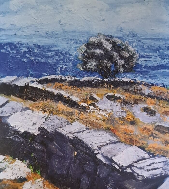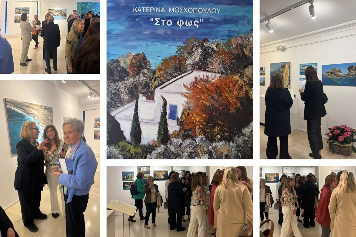 Η εικαστικός Κατερίνα Μοσχοπούλου αγαπάει το φως του νησιού της, το φως της Ελλάδας, τη φύση του κόσμου. Περιηγείται και μετατρέπει τις στιγμές σε εικόνες… ουρανό, θάλασσα, ελιές, κύματα, νηνεμία, τοπίο μετά την καταιγίδα, ρόδια αφθονίας και ελπίδας.