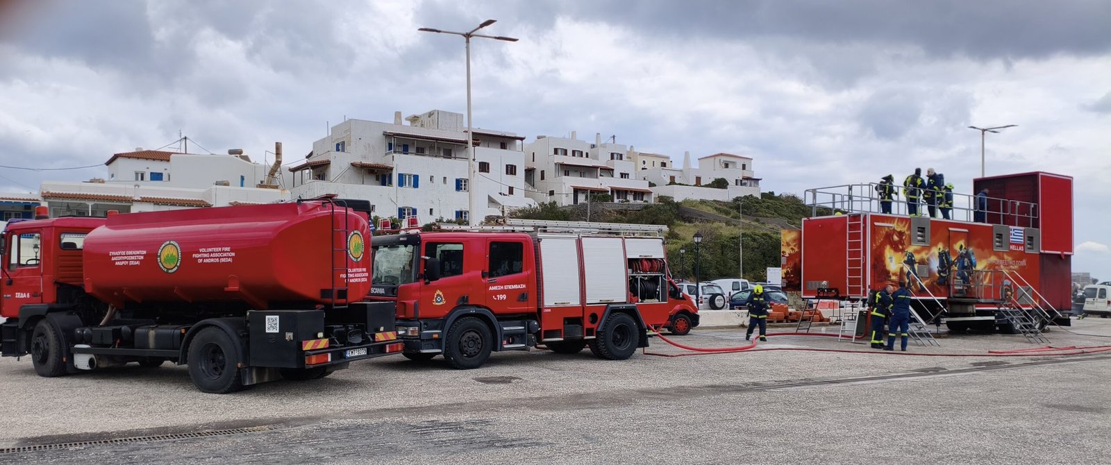 • Την Πολιτική Προστασία Δήμου Άνδρου και τον Σ.Ε.Δ.Α. για την παρουσία υδροφόρας.