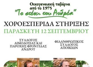 ΜΑΖΙ ΓΙΑ ΤΗΝ ΑΝΔΡΟ : ‘’ Εκδήλωση για καλό σκοπό. Τιμούμε και στηρίζουμε το έργου του Συλλόγου Αιμοδοσίας και του Φιλανθρωπικού Συλλόγου Αποικίων’’